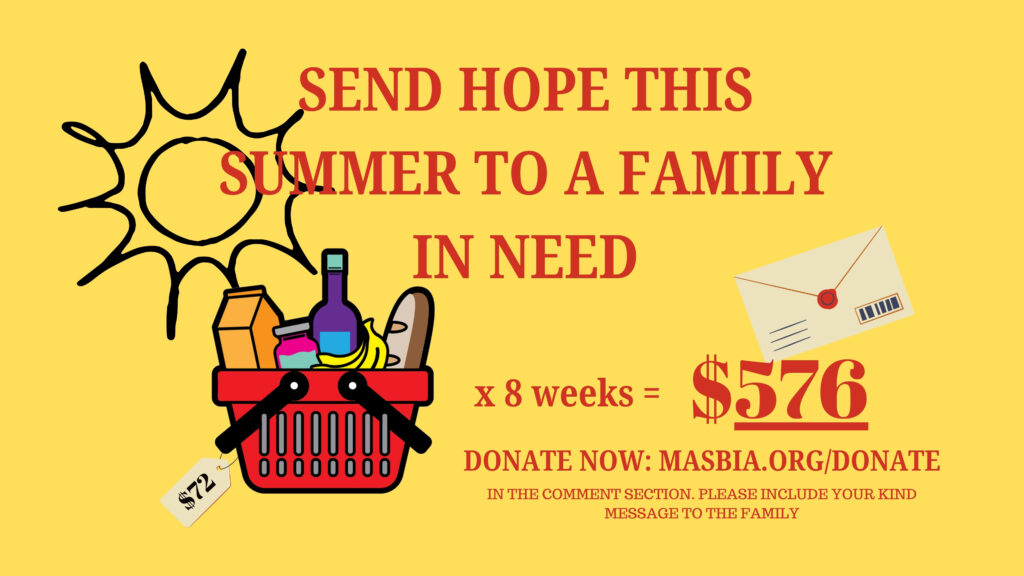 With summer fast approaching, we need your help to sponsor families in need. Each family receives eight Masbia packages over the summer (at $72 per package), so a one-time gift of $576 will feed a family all season long.