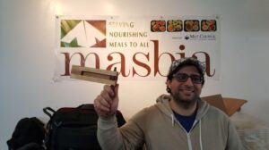 Aronov hashtagged Masbia in his Facebook post, catching the attention of the soup kitchen’s executive director Alexander Rapaport. Always on the lookout for creative ideas, Rapaport contacted Aronov with a unique proposition: using old tables that were no longer in use at Masbia to create new groggers.