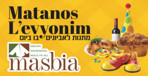 The Ultimate Matanos L’evyonim Opportunity! Masbia Soup Kitchen Network will be serving in-house holiday meals and providing packages of groceries for families to take home, ensuring everyone can celebrate Purim with dignity and joy. Your sponsorship is vital to making this possible. 100% of your donation goes directly to feeding the needy.