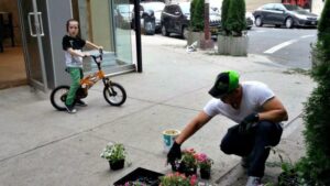 Courtesy of Masbia: Volunteers planted flowers outside the new location this summer.