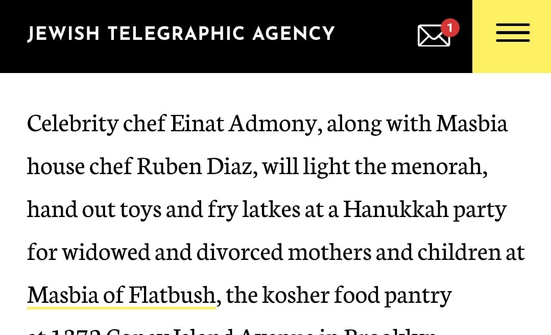 Photographer Pablo Monsalve, Getty Images, came to Masbia of Boro Park in Brooklyn on November 29, 2021, to document the Hanukkah and menorah lighting gathering for divorced, widowed mothers and children at the food pantry organization (Masbia Soup Kitchen Network)…