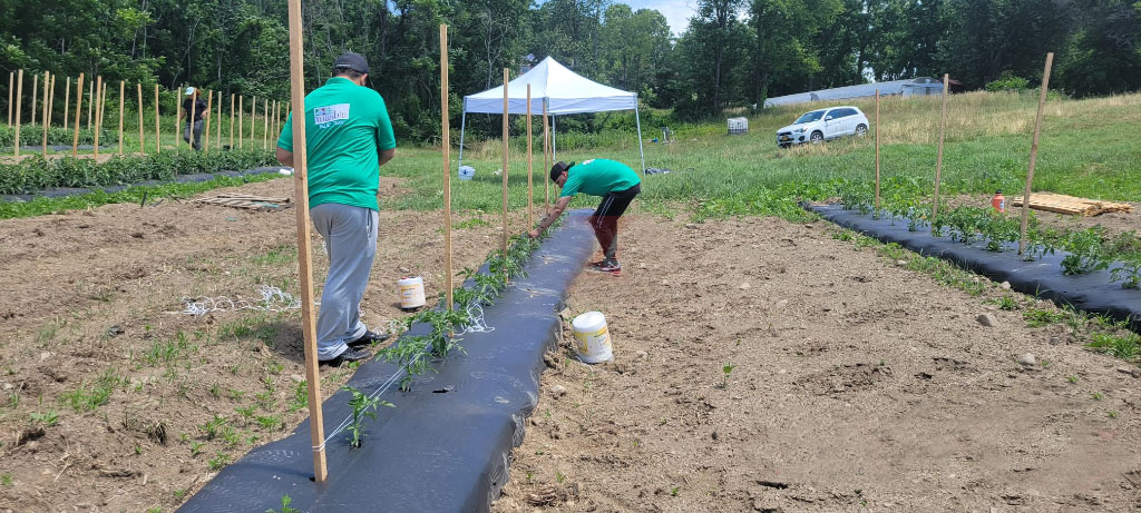 On Monday, volunteers from Masbia worked on the tomato crop, of which farmers will likely start to deliver 2,000 pounds a week to Boro Park, starting in late July until the weather turns cold, the farm’s founder Yisroel Bass told BoroPark24.