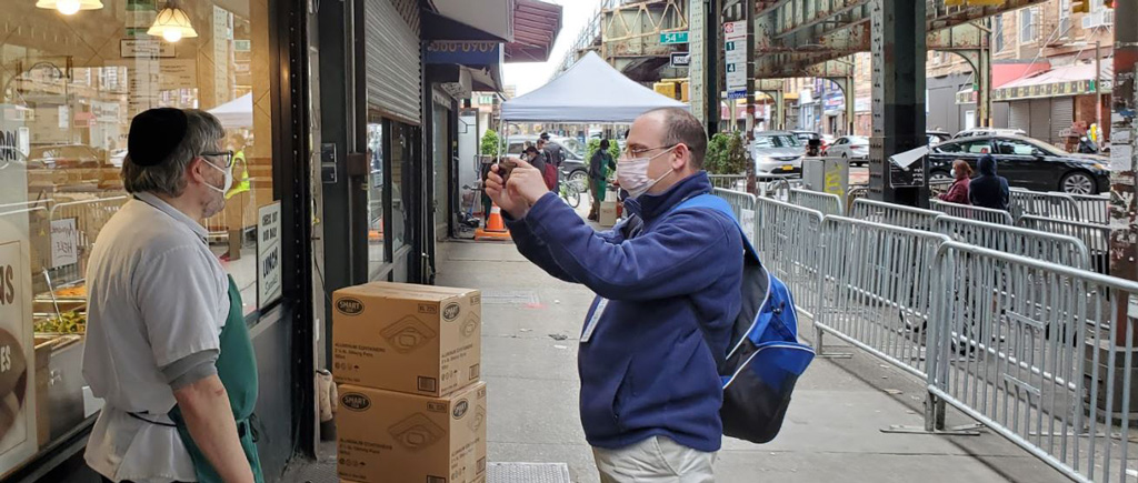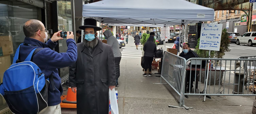 The anchor of i24News in English, Calev Ben-David, reported about Masbia of Boro Park crowded with people to get free meals and groceries during the Covid-19 pandemic.