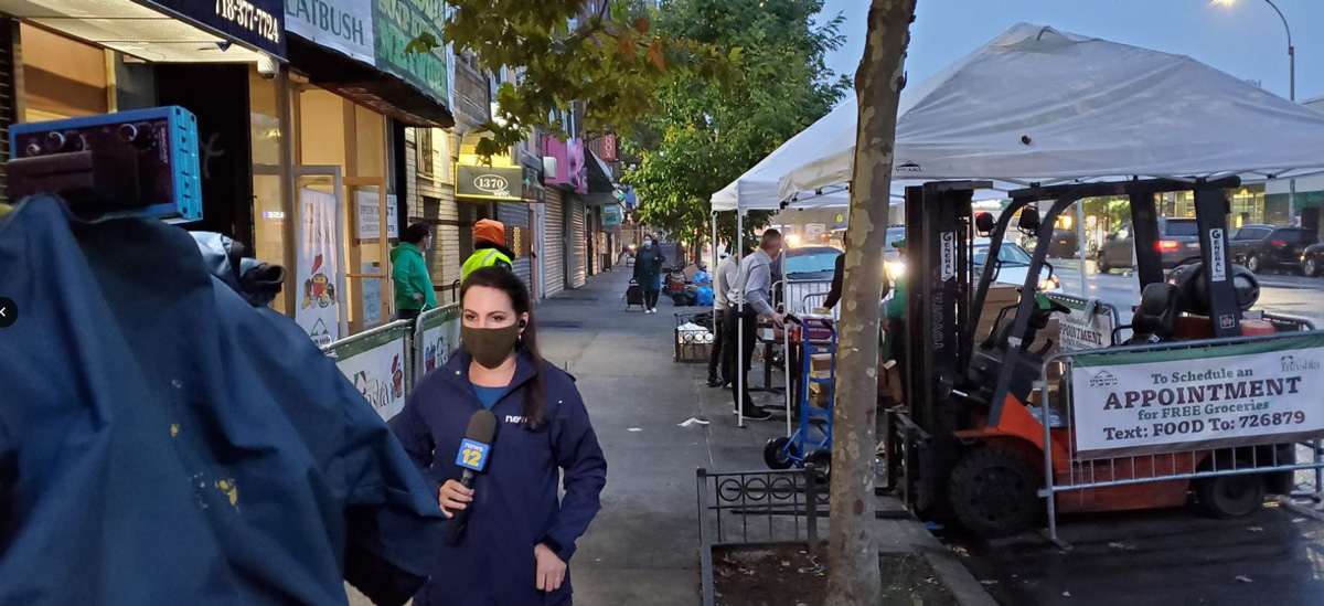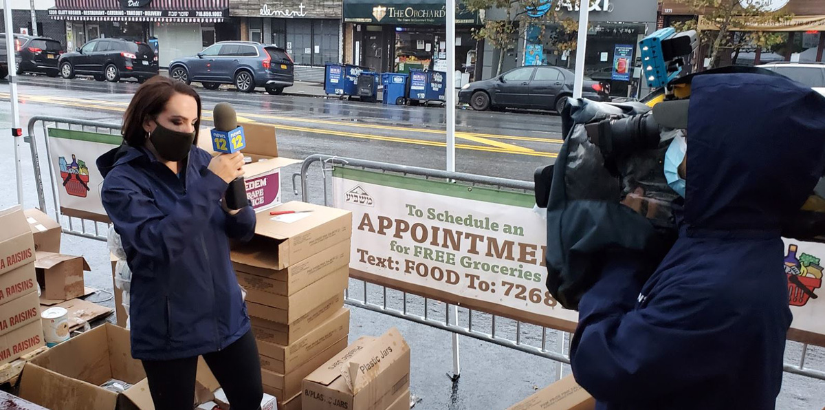 On October 20, 2020, reporter Katie Lusso from News12 Brooklyn came at 5:00 am to report on the Masbia Distributing Food 24 hours. She also came in the afternoon for the evening news. Both segments included an interview with our ED, Alexander Rapaport.