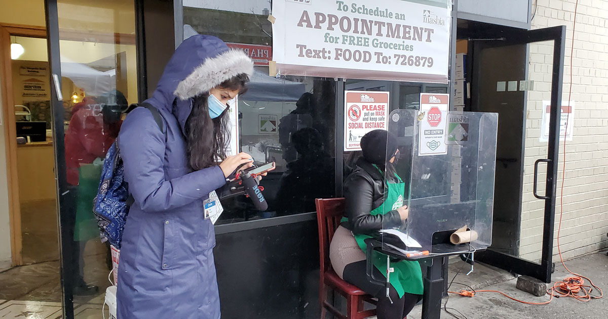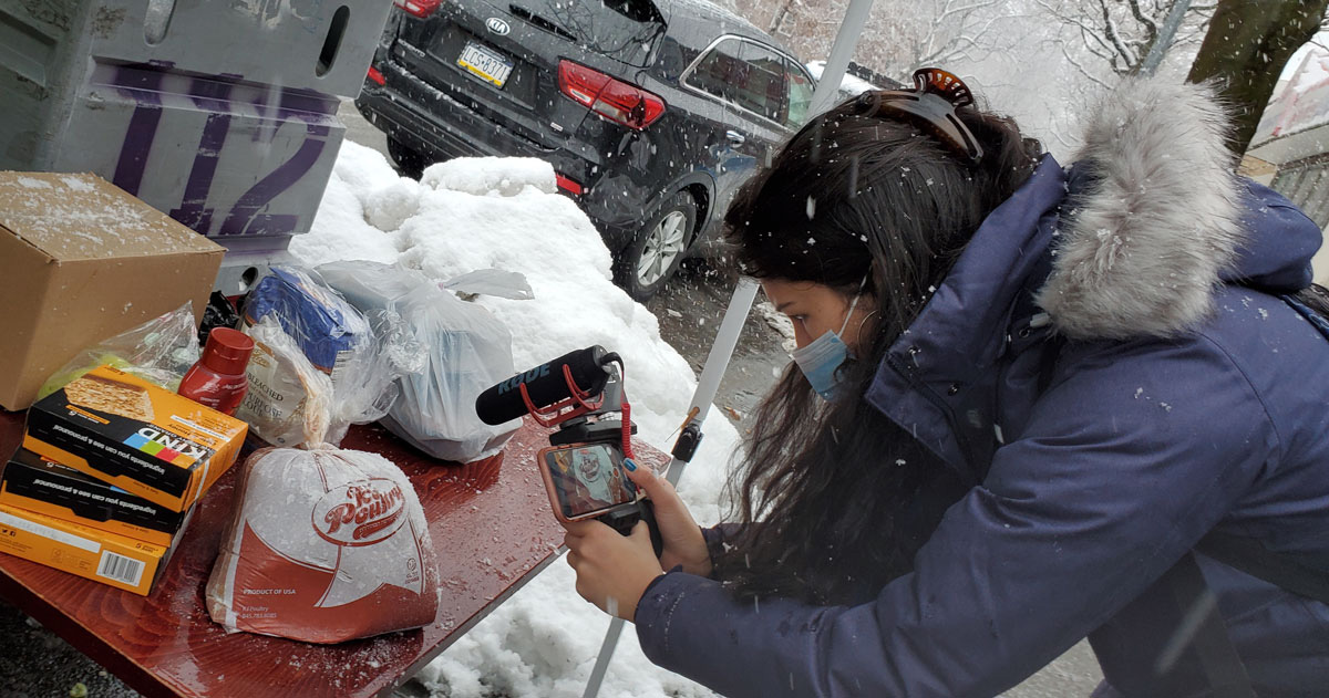 See below photos of the reporter Kay Bontempo of NY1 during Super Bowl 2021 at Masbia of Queens: