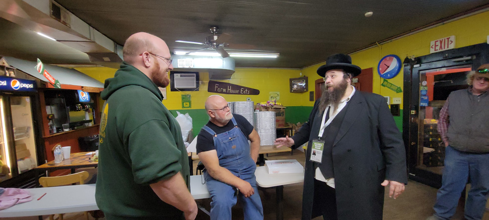So he got a team together including himself, his staff, a rabbi from the Orthodox Union, and noted kosher food personality Naomi Nachman (who brought her daughter along), and they flew to Nashville. From there, they rented pickup trucks and bought whatever they could at area restaurant depot locations before driving about two and a half hours to meet Seavers.