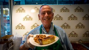 A.B. Grinspan serves a kosher meal at Masbia’s Brooklyn soup kitchen. (Erin Riglin/Columbia News)